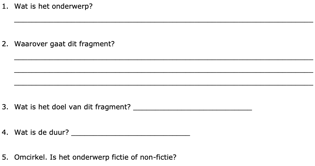 Beantwoord de volgende vragen in je werkbundel. Hier zal je eerst de fragmenten voor moeten bekijken.
