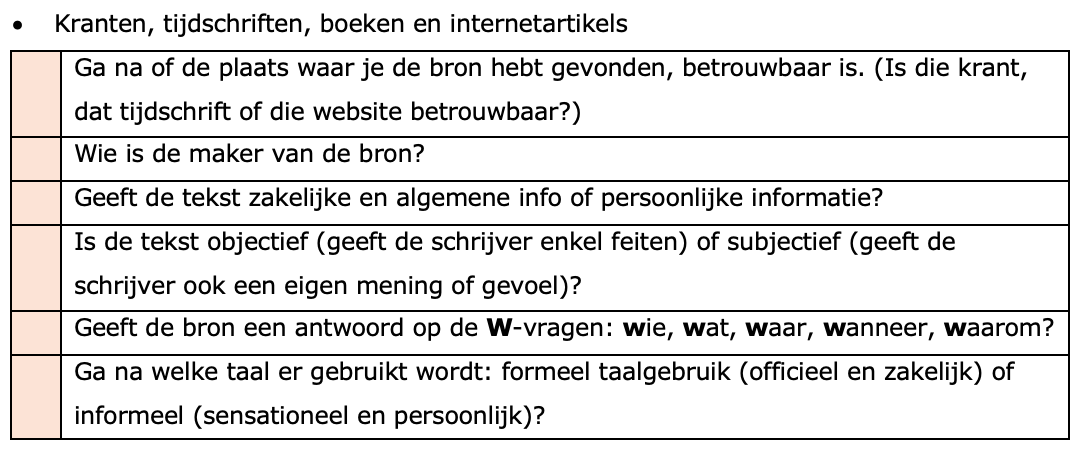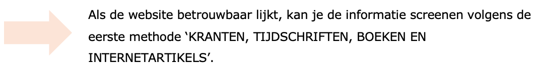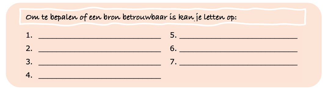 Hoe kan je nu bepalen of een bron betrouwbaar is? Maak even een korte brainstorm in je werkbundel. Noteer je antwoorden.