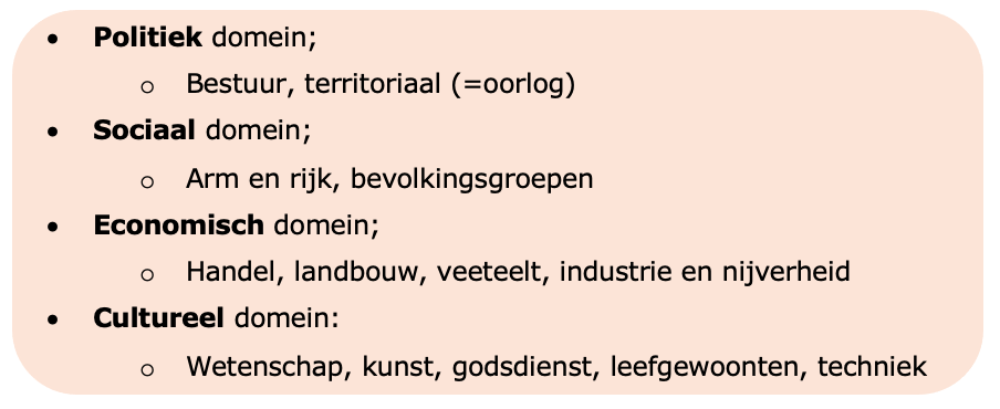 Al deze bronnen behoren tot één of meer domeinen van het menselijk leven: